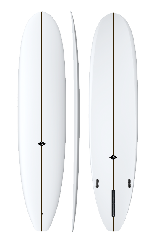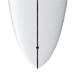 Fairly deep single concave under the nose fades directly into a light double concave in the center of the board, which carries through and deepens in the tail while a light spiral vee fades in through the rear third of the board. Works incredibly as either a single fin (especially with a flex fin), 2+1, or Quad+1. Surf it hard from the tail, trim and cruise from the center or walk it up to the nose. A super versatile, well-controlled, great feeling performance hybrid longboard.